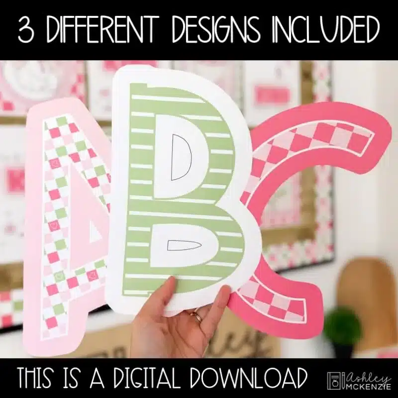 - Printable bulletin board letters in 3 unique designs – THIS IS THE PLAYFUL FONT STYLE