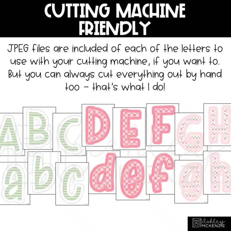 - JPEG files of each of the letters/punctuation/numbers are also included so you can use your cutting machine to cut out the letters if you know how to do that.