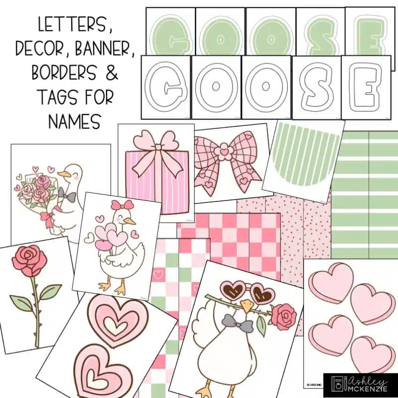 โจ Save with the Valentine Goose Bulletin Board Bundle and get all 5 matching resources (bulletin board kit, classroom posters, A-Z bulletin board letters in playful and primary fonts, and Google Slides Templates)!