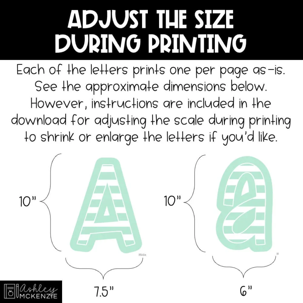 Use the helpful guide included in the download for printing tips, saying ideas, and even steps on how to enlarge or shrink the letters during printing to fit your unique display!